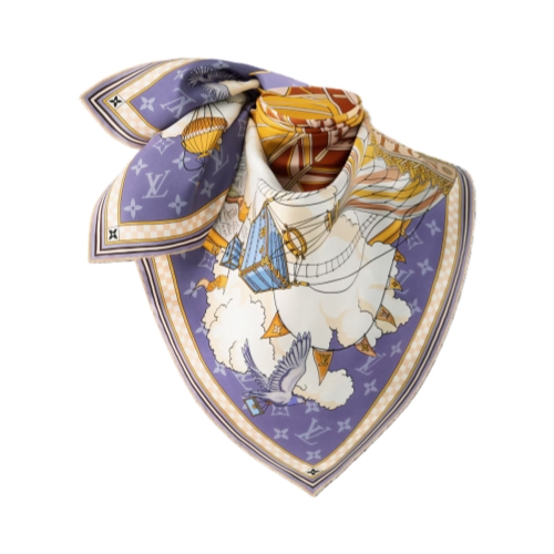 Crafted in sumptuous silk, the From The Cloud Square is a wearable work of art. Its richly detailed pattern depicts a fleet of colorful hot air balloons soaring through the sky above Paris, with classic Louis Vuitton trunks in tow. This exceptional, elegant accessory captures the very essence of the House’s heritage and travel spirit.