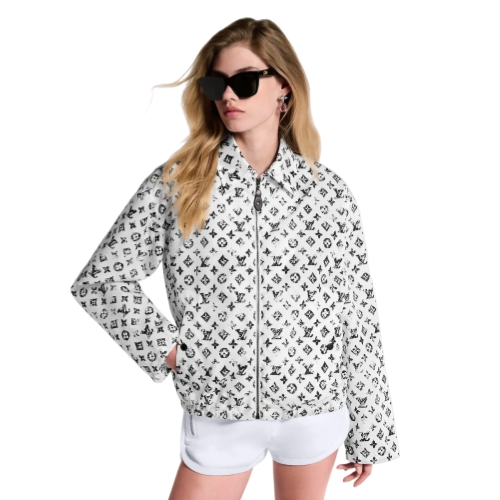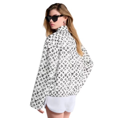 This jacket is made from lightweight nylon twill in a graphic allover print of this season’s Pop Art-inspired Monogram motif. It is cut in a comfortable straight shape with a smart collar, while an elasticized waistband and exposed zipper fastening underscore the sporty style. Complete with two side pockets.