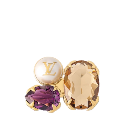 The captivating design of the Heirloom ring expresses the strength and individuality of the modern-day Louis Vuitton woman. Its finely crafted gold-toned band holds a pair of colorful zircons plus a white resin pearl embellished with the iconic LV Initials. And for a refined signature detail, the claws of the settings are exquisite miniature Monogram Flowers.