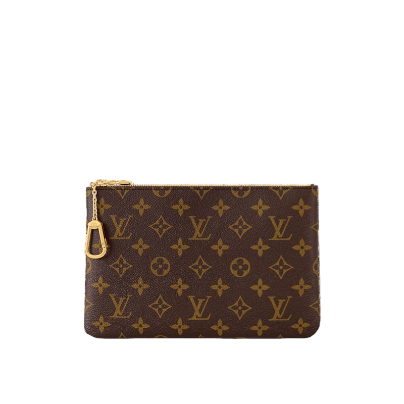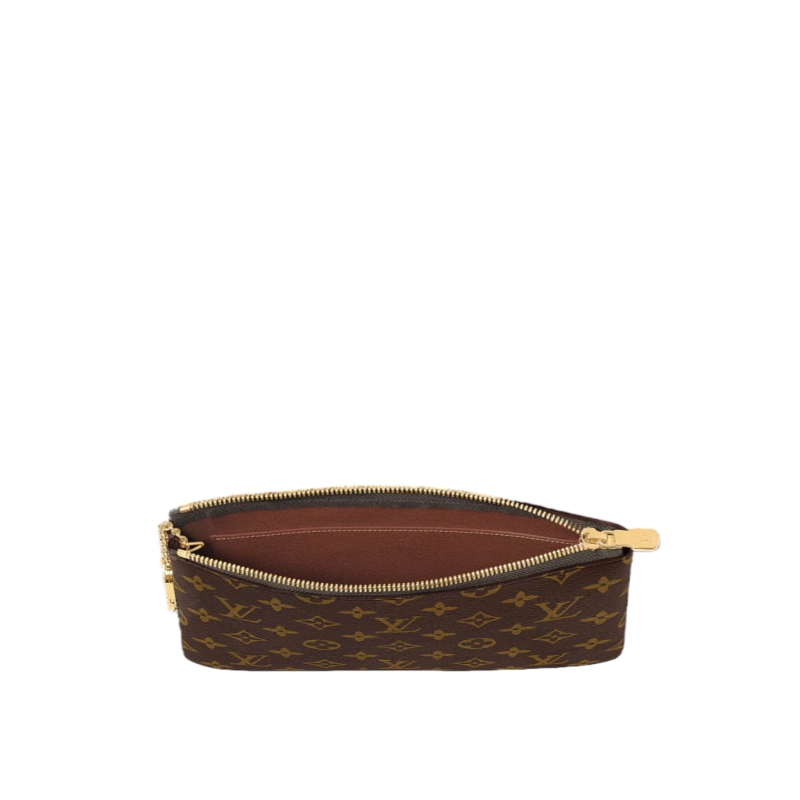 The new Pochette Clés M joins the House’s iconic collection that debuted in 1984. This sleek addition is made from signature Monogram coated canvas, embellished with an elegant gold-tone chain and zip-pull across the top. A perfect travel companion, it is sized to store a passport and comes with a large card slot. Slip it into a bag or carry it by hand.