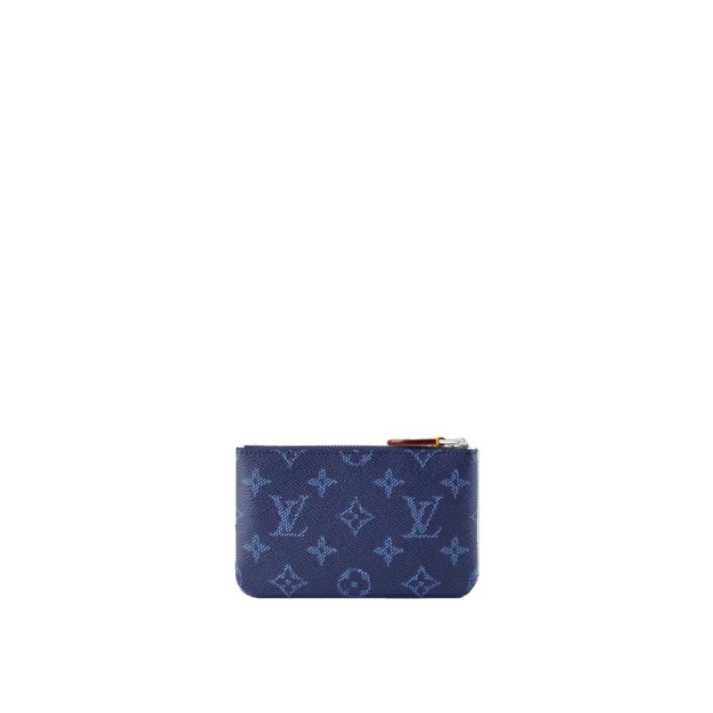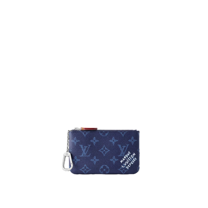 Updated in a seasonal colorway, this small Key Pouch is crafted from Monogram Heritage canvas, paying tribute to the House’s heritage and quality craftsmanship. It is trimmed with smooth cowhide and includes a silver-toned chain, complete with a hook to attach keys. There is enough space inside to store coins and bills.