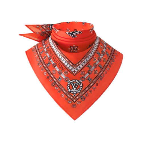 The stylish LV Bandana square offers a creative update of the classic bandana. Its subtly original pattern, printed on a sumptuous silk-cotton blend, combines the House’s emblematic Monogram Flowers and Initials with traditional paisley motifs. A versatile everyday accessory, this refined square strikes an ideal balance between heritage style and contemporary allure.