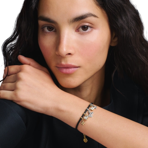 With its refined details and sophisticated design, the LV Blooming Strass bracelet makes a strong signature statement. Its slim calfskin cord holds an array of House icons, including Monogram Flowers and the LV Initials, finely crafted in gold and silver-colored metal and enlivened with sparkling zircons. Ideal for adding a striking touch of feminine elegance to any look.