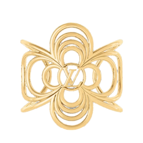 Inspired by the mystique of sailing and the sea, the LV Breeze cuff bracelet reimagines the House’s iconic signatures in a nautical spirit. Evoking the knots and coils of shipboard ropes, its graceful design outlines a Monogram Flower and the LV Initials in radiant gold-colored metal. A sophisticated contemporary bracelet, ideal for both daytime and evening occasions.