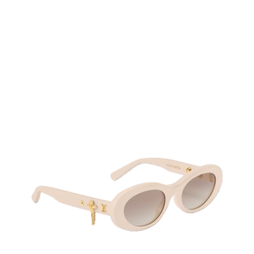 The glamorous, eye-catching design of the LV Charms Oval sunglasses offers a creative new take on accessorizing. Each pair comes with three delicate, feminine earrings to be attached as charms through eyelets on the temples. Reversible with their gold-colored Louis Vuitton engraved studs, the earrings can be mixed and matched as desired to express each wearer’s personality.