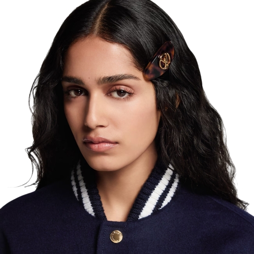 The fun and functional LV Circle hair clip offers an original way to wear the Louis Vuitton signature. Crafted in lightweight, durable acetate, it features an LV Circle emblem in lustrous gold-toned metal. Stylish and practical for any occasion, it adds a discreet but distinctive House touch to any hairstyle.