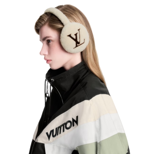 Crafted in plush, fluffy shearling, the LV Cloud earmuffs are the perfect way to stay warm with style all winter long. Their sophisticated design features the LV Initials on one side and a Monogram Flower on the other for an unmistakable House signature. And they fold up to fit in a special Monogram pouch, ideal for travel.