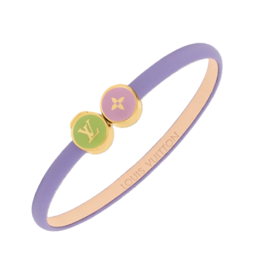 The casual-chic LV Confetti bracelet offers an eye-catching variation on the House’s beloved icons. Its slim leather strap features a colorful metal and enamel closure in the form of two confetti-like disks adorned with a Monogram Flower and the emblematic LV Initials. This fun, easy-to-wear bracelet adds a playful creative accent to any look.