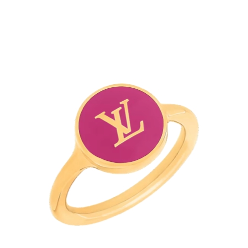 Crafted in lustrous gold-toned metal, the LV Confetti ring pays homage to the iconic Monogram signature in an upbeat, festive spirit. Its whimsical design features a disk of brightly colored enamel adorned with a delicate Monogram motif. Worn alone or stacked, this eye-catching ring adds a playful House touch to any look.