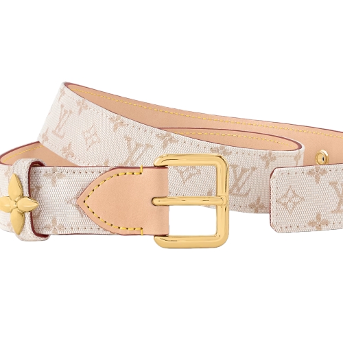 A contemporary mix of materials and an original House signature make the LV Flowergram Ardillon 30mm Belt a standout. Styled in a combination of leather and canvas adorned with the iconic Mini Monogram pattern, it features a finely sculpted gold-tone metal Monogram Flower on the loop. Perfect for adding a note of casual elegance to any outfit.