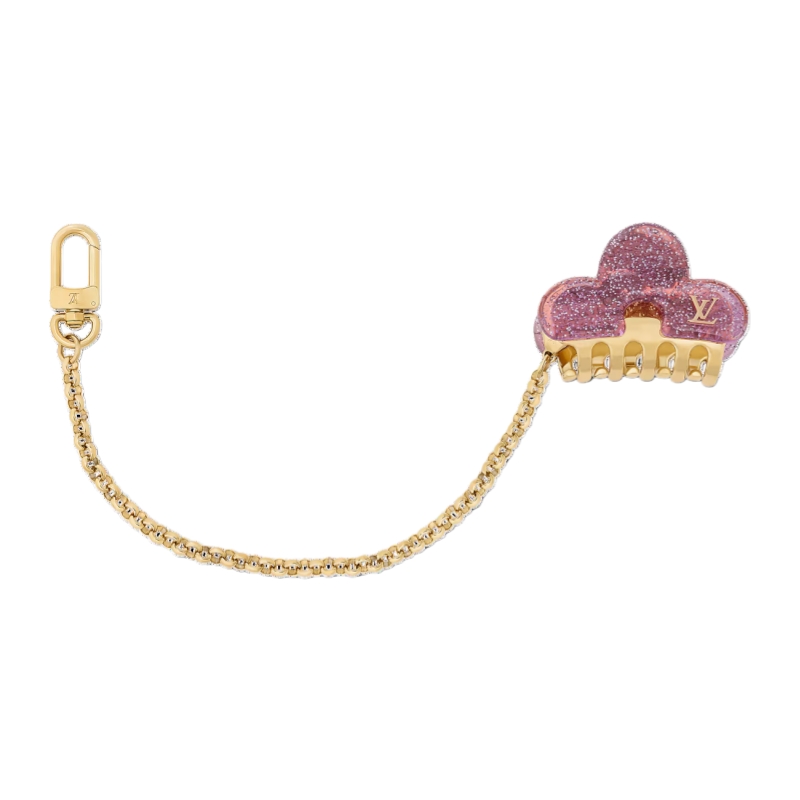 The original, on-trend design of the LV Hair Clip bag charm offers two accessories in one. Crafted in colorful Plexiglas, it outlines the shape of the emblematic Monogram Flower, accented with the LV Initials for an extra House touch. Perfect for embellishing a favorite handbag, with its gold-colored chain removed it becomes a fully functional hair clip.