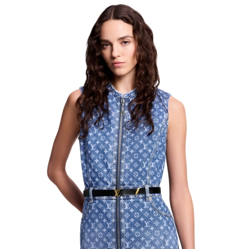 This timeless elegant black evening belt is embossed with a pattern recalling the gros grain ribbon used in couture. The LV Initiales buckle in shiny gold metal complements this sophisticated design, which will enhance any outfit.