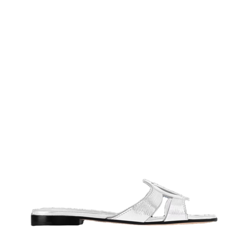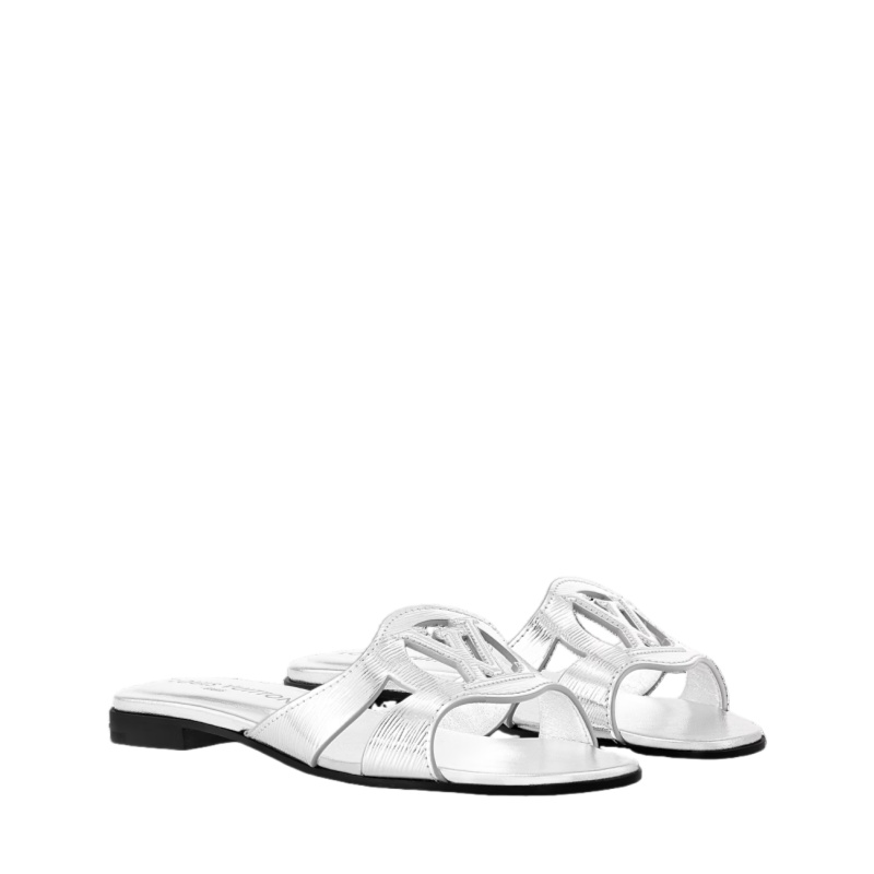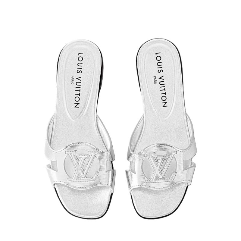 The LV Isola flat mule shines in a metallic, miniature version of the House's emblematic Epi calf leather, notable for its distinctive grain. The upper is embellished with an intricately cut-out LV Circle signature. A fine leather outsole finishes this relaxed yet refined style.