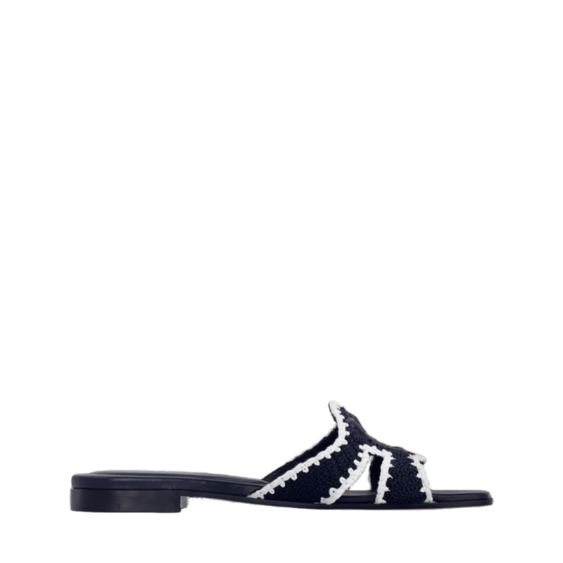 This seasonal edition of the LV Isola flat mule is made of cotton crochet, which gives it an intricate, hand-crafted look. The white detailing around the edges is mirrored by the LV Initials signature in white leather, which adorns the wide front strap. This stylish, summery design is finished with a fine leather outsole.