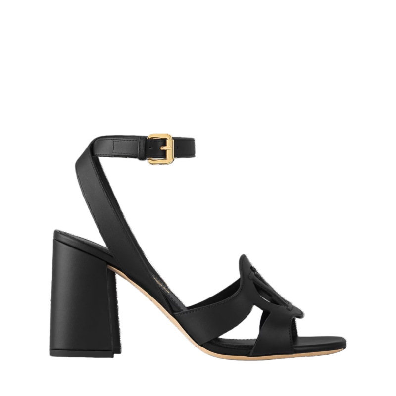 The iconic LV Isola collection welcomes the LV Isola sandal, crafted from supple calf leather. Distinguished by the oversized LV Circle signature on its upper, this elegant style comes on a high block heel, which is also covered in leather. This model is fastened around the ankle by a slender strap with a delicate, gold-tone buckle.