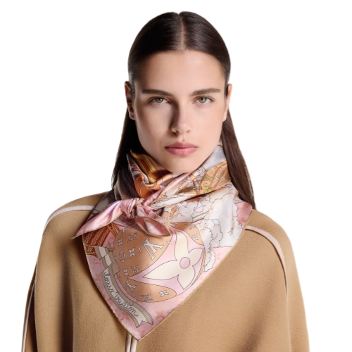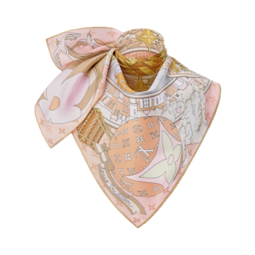 The LV Journey silk square embarks on an extraordinary adventure in the world of travel. Its intricate, playful print combines images of luggage, hot air balloons, trains, ships and airplanes with dice, clouds and the House's signature Monogram and Damier motifs. A striking, timeless design that is sure to make this an iconic accessory.