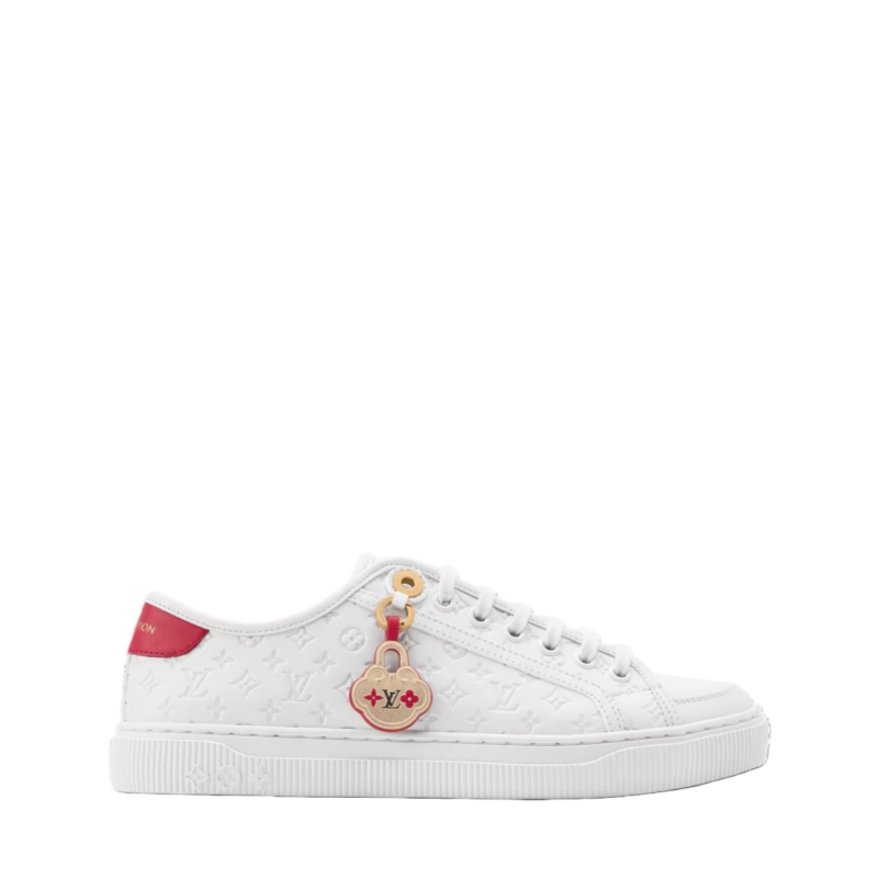 Celebrating the Chinese New Year, this exclusive edition of the Time Out sneaker is embellished with a leather luggage tag embossed with a gold-toned longevity lock motif taken from the leather goods collection. This timelessly stylish sneaker has an upper in smooth calf leather and an elevated EVA outsole decorated with Monogram Flowers.