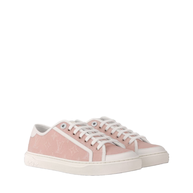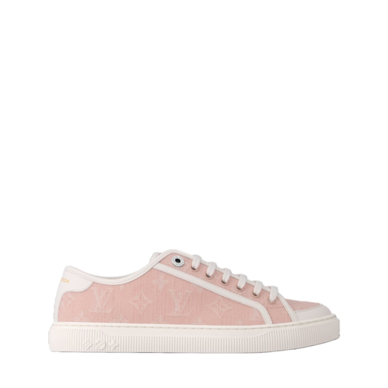 The LV Lagoon sneaker in Monogram denim is a classic style with a subtle vintage feel. It is notable for its refined detailing, including natural leather trim with a Louis Vuitton signature and engraved, gold-tone eyelets. White piping and laces and a white rubber outsole decorated with Monogram Flowers complete this design.