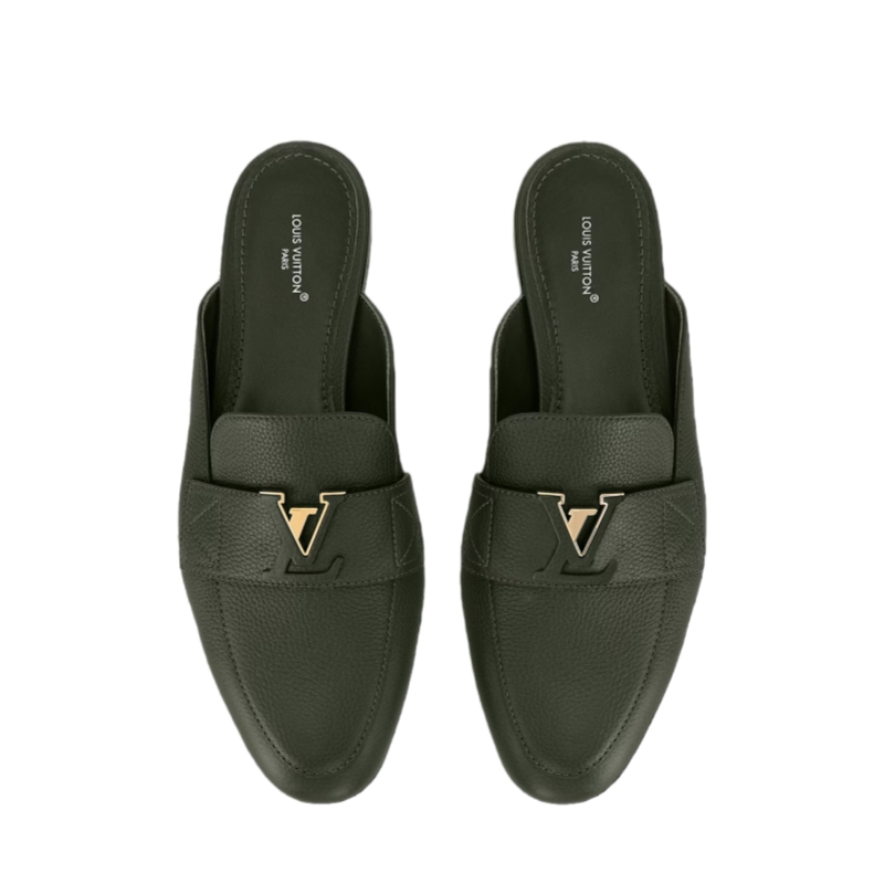 With its easy, slip-on fitting, the LV Mare open-back loafer brings a fashionable twist to a timeless style. It is crafted from supple, grained calf leather and signed with a partially leather-covered LV Initials accessory, inspired by the emblematic Capucines bag. A fine leather outsole completes this refined design.