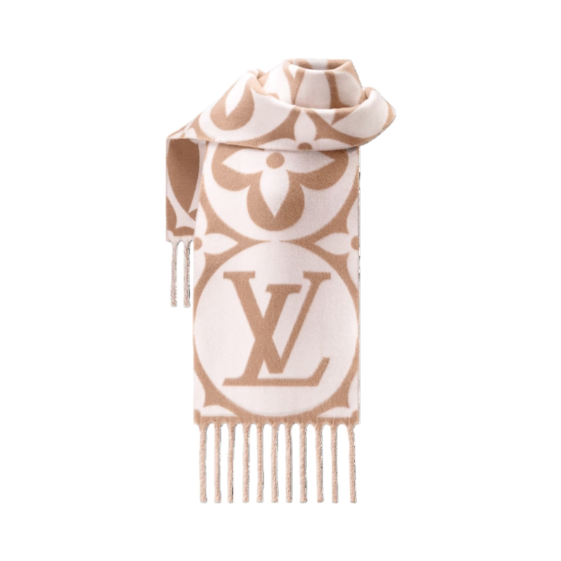 Woven from fine pure wool, the LV Medallion scarf was crafted to deliver warmth in the heart of winter. A bold pattern of giant LV Initials and Monogram Flowers gives it an instantly recognizable signature look, with extra-long fringe for a luxurious finish. An eye-catching accessory, and a coddling companion on cold windy days.