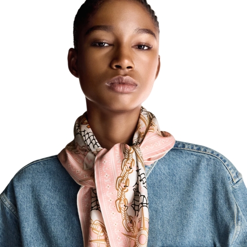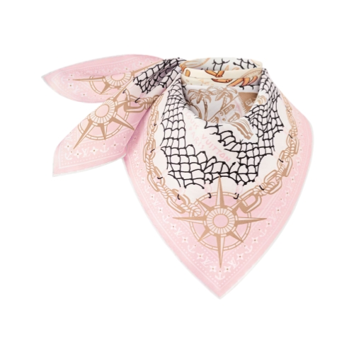The all-silk LV Ocean Treasure Map square is a celebration of the House’s devotion to travel. Its intricately detailed pattern combines nautical images with signature icons like classic trunks and an exotic version of the historic Louis Vuitton house in Asnières. A blend of vintage charm and contemporary elegance, perfect for urban adventurers or global explorers.