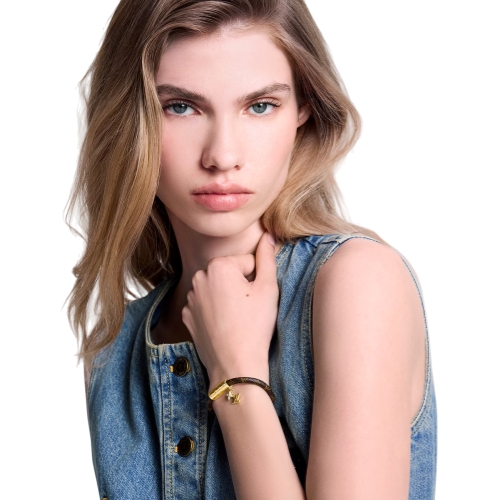 The design of the LV Push bracelet was inspired by the House’s emblematic icons. Both the canvas cord and the gold-tone metal clasp feature the heritage Monogram pattern, echoed in two charms: an LV signature and a Monogram Flower studded with sparkling crystals. An elegant addition to any outfit, it makes a wonderful gift for Monogram fans.