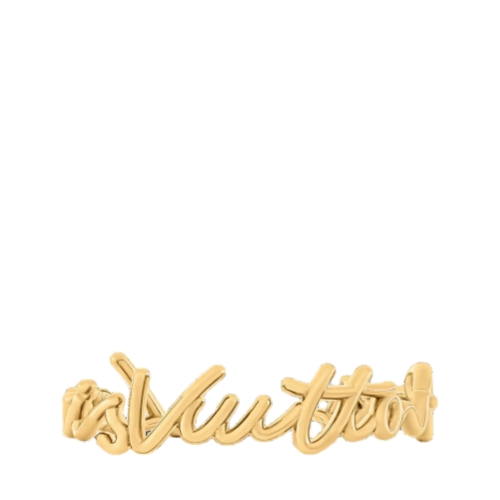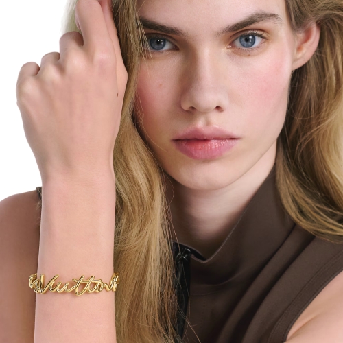 The casual-chic LV Script bracelet was inspired by a Louis Vuitton signature in a sleek hand-written style, first seen at the Spring-Summer 2025 runway show. Its creative design takes the form of an open band spelling out the House’s name in bright gold-colored metal. This precious, comfortable bracelet is easy to wear for everyday or special occasions.