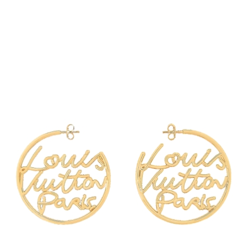 The stylish and sophisticated LV Script earrings feature a distinctive House hallmark spotlighted in the Spring-Summer 2025 runway show. Their unique design combines slim gold-colored metal hoops with a Louis Vuitton Paris signature crafted in an elegant, fluid hand-written style. Lightweight and easy to wear, these on-trend earrings are perfect for all occasions.