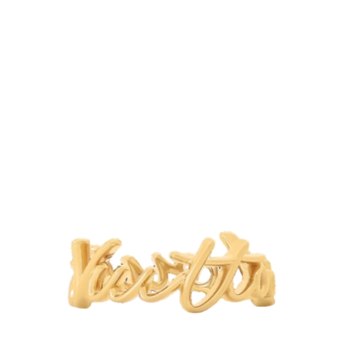 The unique design of the LV Script ring was inspired by the bold, sleek House signature spotlighted in the Spring-Summer 2025 runway show. Its gleaming gold-toned metal band spells out the name Louis Vuitton in a smooth, flowing script style. On-trend and elegant, this eye-catching ring adapts easily to casual or more formal looks.