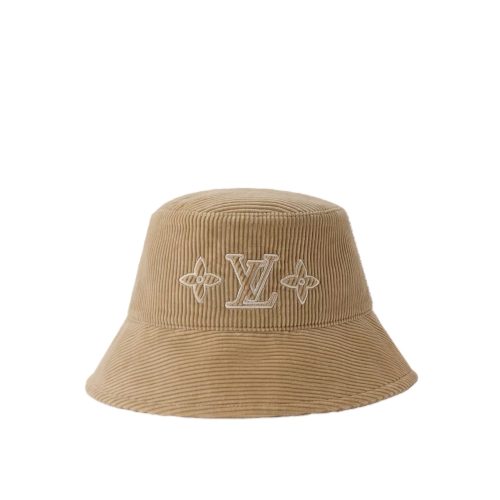Easy to wear with any casual outfit, the LV Signature Corduroy bucket hat expresses timeless laid-back chic. Its plush cotton corduroy crown is adorned with the iconic LV Initials, flanked by two Monogram Flowers for an unmistakable House signature. Both stylish and comfortable, this is the perfect mid-season hat.