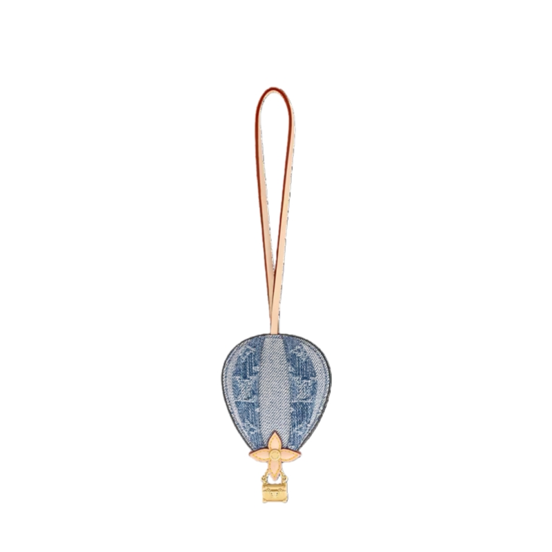 The playful, creative design of the LV Sky bag jewel is a celebration of the House’s travel heritage and savoir-faire. Suspended from a slim leather strap, a hot air balloon crafted in Monogram denim carries a precious cargo: a miniature Louis Vuitton travel bag in gold-toned metal. Ideal for adding a casual on-trend accent to any handbag.