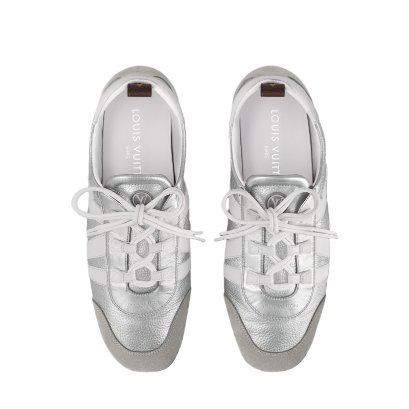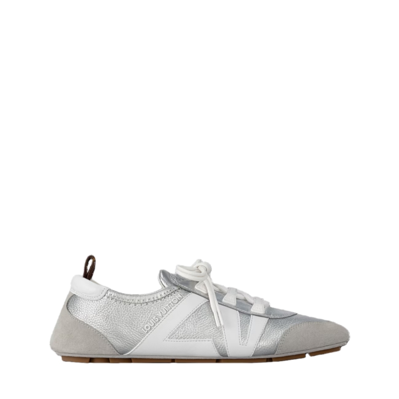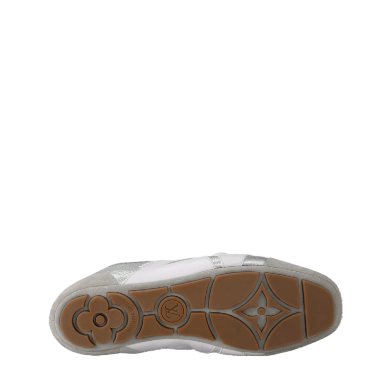 The LV Sneakerina is a fashion-forward style combining the qualities of a sneaker and a ballerina. This version comes in metallic grained calf leather with contrasting trim, including an LV signature on the side. Stylish and versatile, this model features a sacchetto construction, a testament to Louis Vuitton craftsmanship, and TPU outsole for lightness and suppleness.