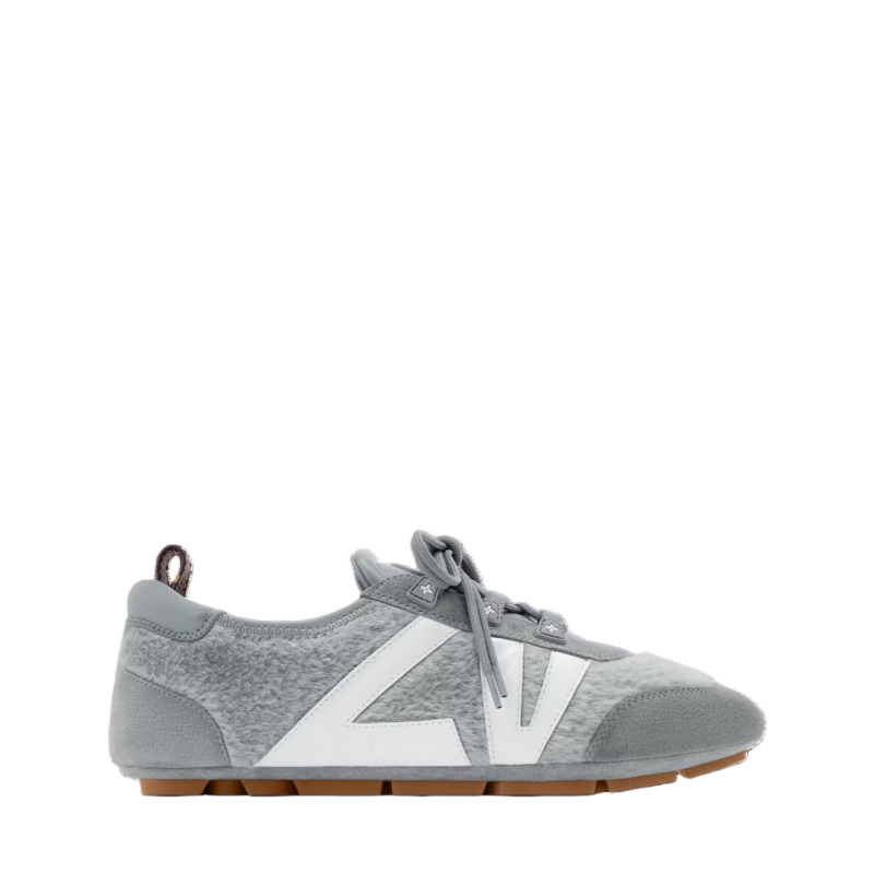 This version of the LV Sneakerina sneaker ballerina comes in soft, woolly fabric with coordinating suede calf-leather trim. Combining the qualities of a sneaker and a ballet pump, this model features a supple sacchetto construction for comfort and lightness. It is finished with double laces and House signatures, including a dynamic LV on the side.