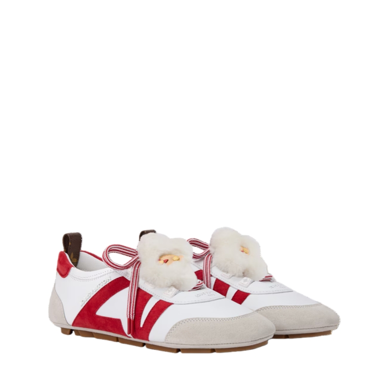 This exclusive edition of the LV Sneakerina sneaker celebrates the Chinese Year of the Horse. The upper is made of soft napa and suede calf leather and is accessorized with a shearling charm featuring the Louis Vuitton Vivienne mascot. Supple and lightweight, the LV Sneakerina combines the benefits of a sneaker and a ballet pump.
