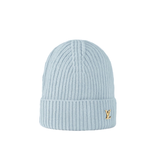 The ribbed LV Spark beanie features a classic construction finished with a polished hardware accent. A turn-up brim enhances the casual aesthetic, while LV Initials in gleaming hardware add a distinguished House detail. This pure cashmere piece is offered in a range of timeless colors for versatile wear.