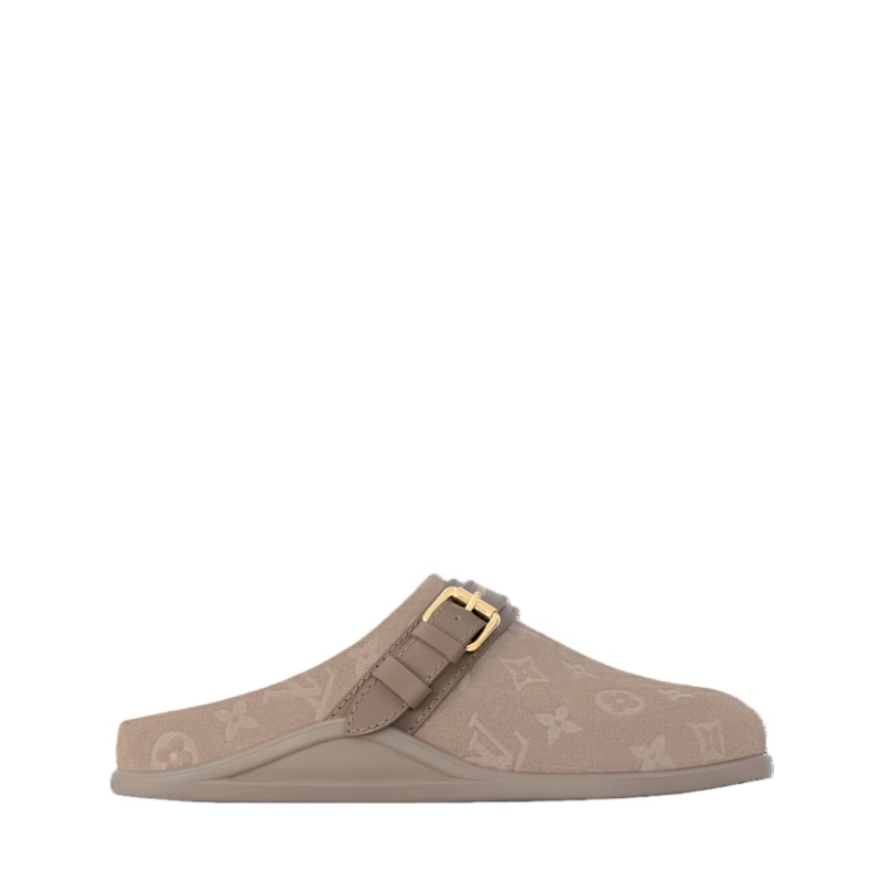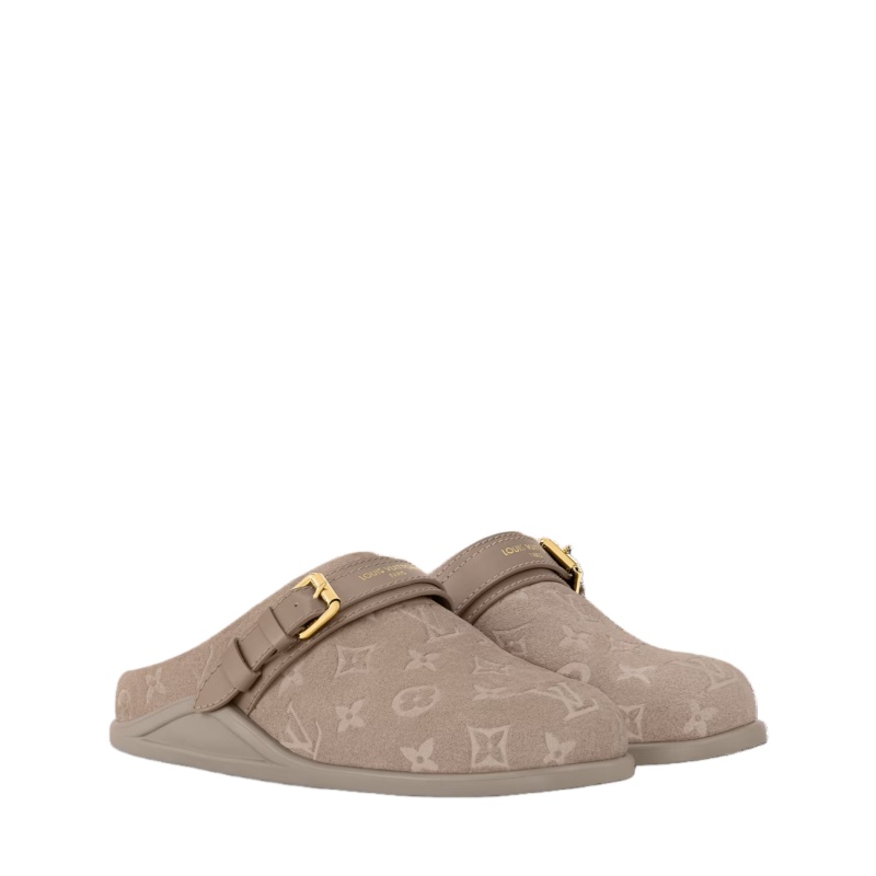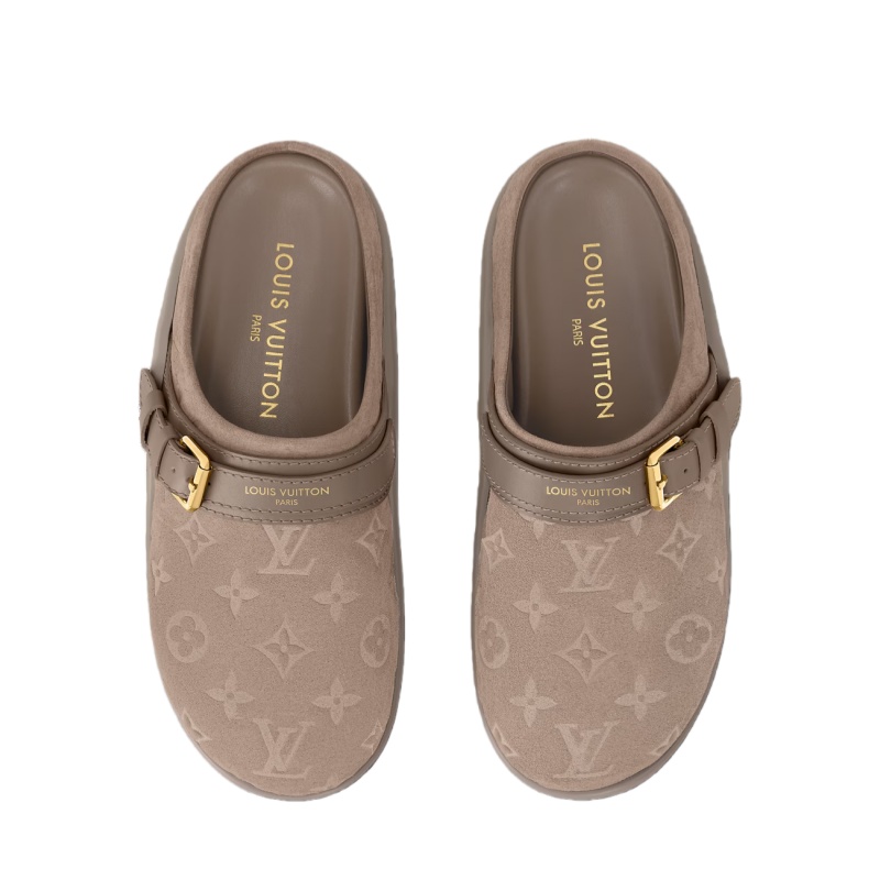 The LV To-Go comfort clog is an on-trend, go-anywhere style in suede calf leather debossed with the Monogram pattern. The upper features an adjustable leather strap with a gold-toned buckle and the Louis Vuitton signature. This slip-on is finished with a lightweight rubber outsole with a wave detail inspired by the LV Archlight sneaker.