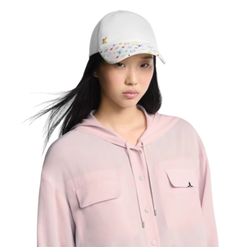 The LV x TM LV Get Ready cap features an artistic variation on a House icon created by Takashi Murakami for his high-profile collaboration with Louis Vuitton. The Japanese artist’s playful Monogram Multicolor pattern adorns the bill, echoed by the LV Initials on the all-cotton crown. A fun, sporty cap, ideal for fashion fans and art lovers.