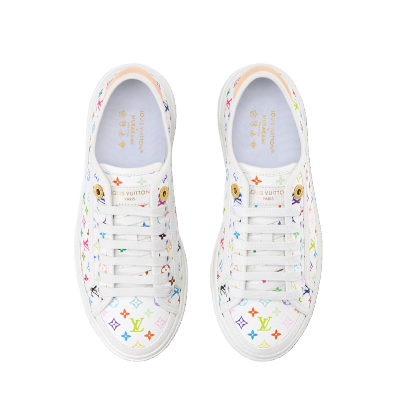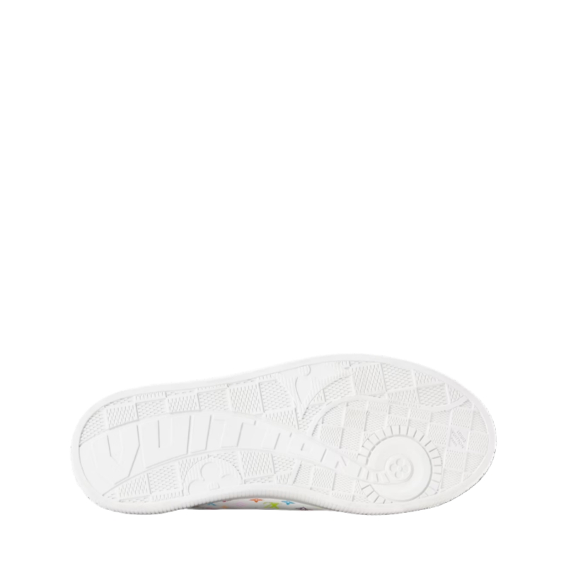 Monogram Multicolore canvas, created by Japanese artist Takashi Murakami, brings a pop twist to the LV Lagoon sneaker. This stylishly simple design is elevated by refined details, such as trim in the House's emblematic natural leather and engraved, gold-toned eyelets. It is finished with a lightweight rubber outsole decorated with Monogram Flowers.