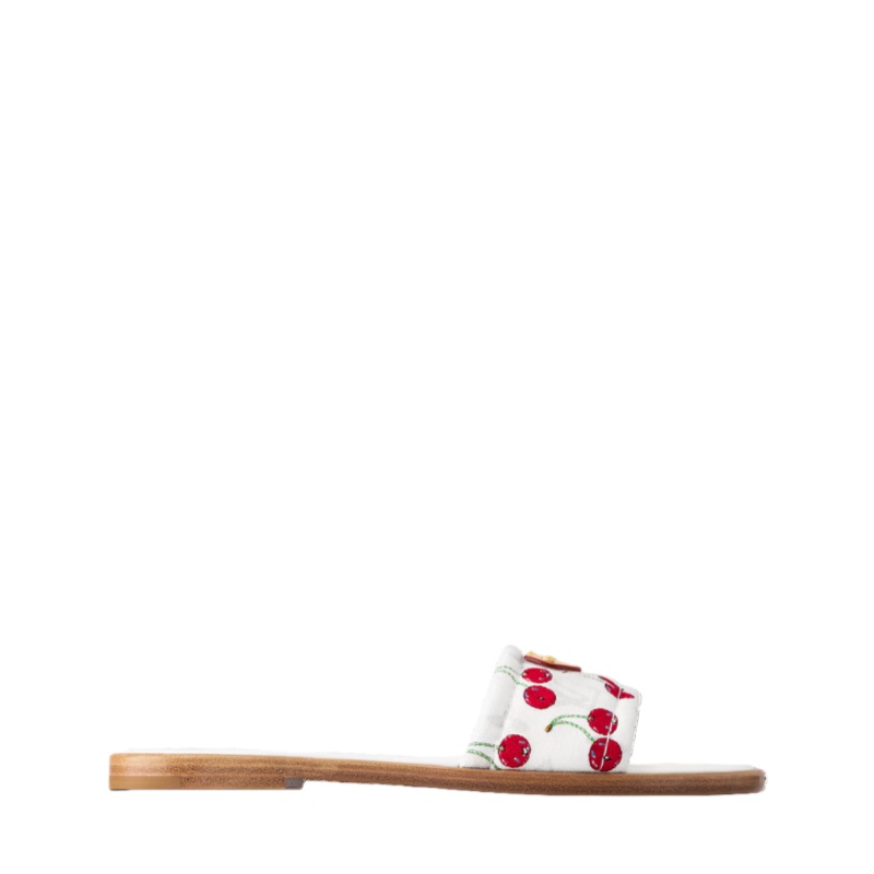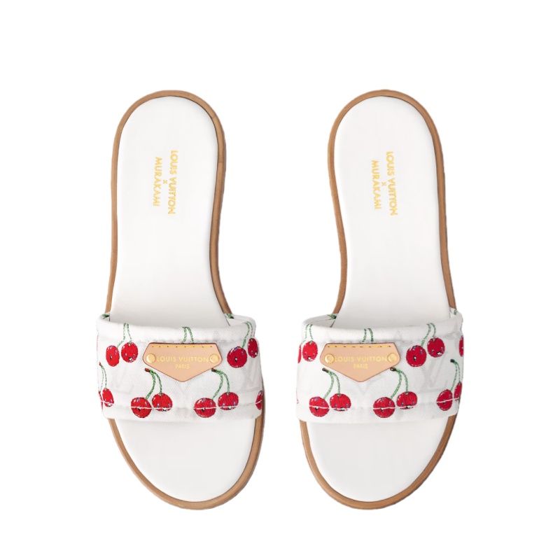 Joyful details from the second edition of the Louis Vuitton x Takashi Murakami collection rework the Lily flat mule with a breezy summer spirit. The upper is crafted from Monogram coated canvas in an understated seasonal shade detailed with luscious cherry motifs in the Japanese artist’s instantly recognizable style, while a leather Louis Vuitton Paris patch adds a final signature touch. A leather outsole completes the casual slip-on style.