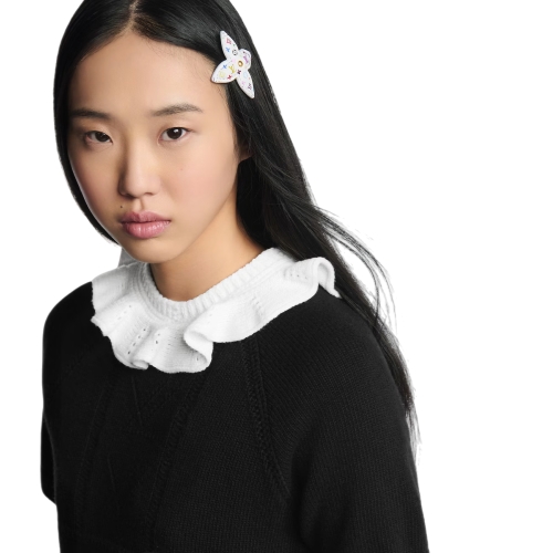 The finely detailed design of the LV x TM Monogram Multicolor Flower hair clip offers a unique multiple signature look. It features a Monogram Canva Flower adorned with Takashi Murakami’s playful multicolored Monogram motif against a tone-on-tone Monogram background. A gold-toned Louis Vuitton rivet adds an extra House touch to this fun and functional accessory.