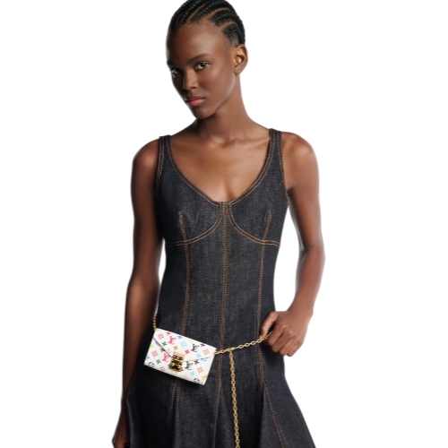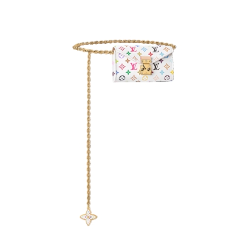 The limited-edition LV x TM Pouch Metis belt features a colorful signature look from the House’s groundbreaking collaboration with Takashi Murakami. Its fully adjustable gold-colored chain is paired with a detachable pouch adorned with the Japanese artist’s playful remake of the iconic Monogram motif. A Flowergram charm adds an extra flourish to this on-trend, multifunctional belt.