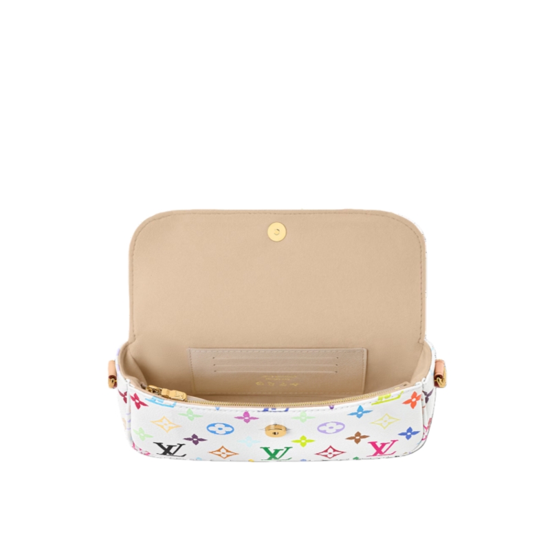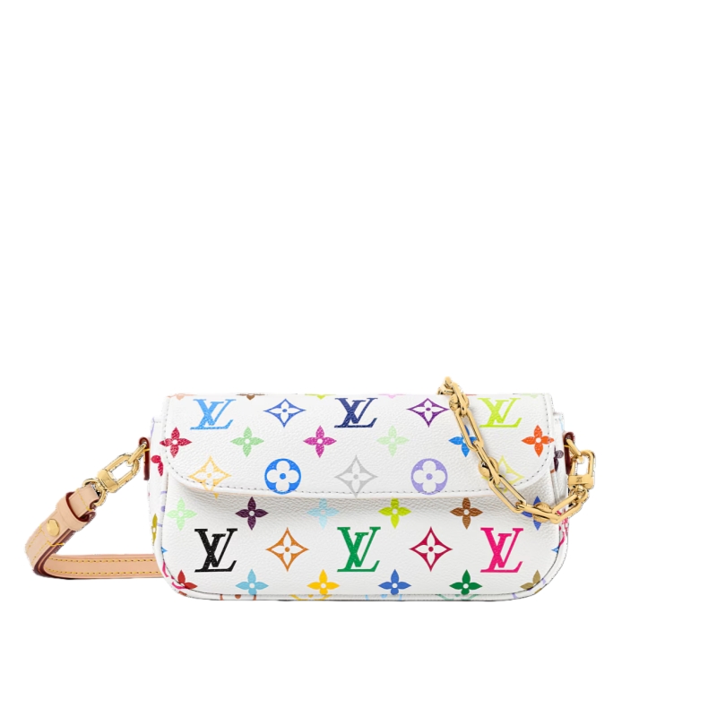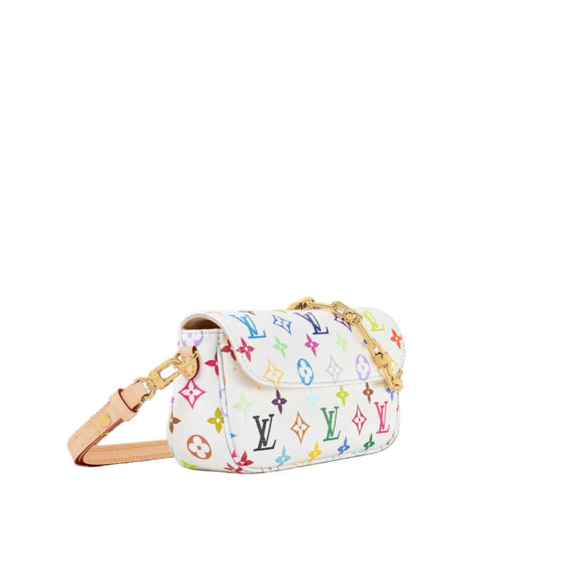 Originally inspired by the Sac Recoleta from the 00s, this edition of the Wallet On Chain Ivy celebrates 130 years of the iconic Louis Vuitton Monogram. The emblematic pattern is showcased in a multicolor palette, set against the House’s signature canvas. This version, from the Louis Vuitton x Murakami collection, is adorned with gold-toned hardware including an animated chain and is fitted with multiple card slots and pockets.
