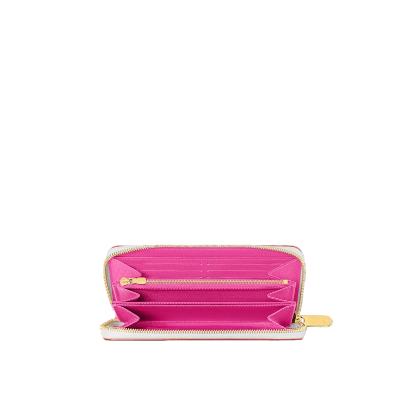 This go-to Zippy wallet is playfully uplifted with a multicolored Monogram motif from the re-edition of the Louis Vuitton x Murakami collection, which revisits the House's iconic signature with the Japanese artist’s vibrant color palette. The golden zipper opens to reveal a bold pink lining. The inside contains separate compartments for bills, a zipped coin pocket, two flat pockets and 12 card slots.