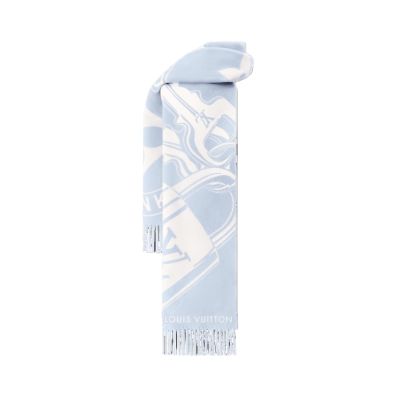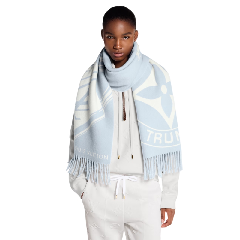 The intriguing design of the Lock And Keys scarf is a creative evocation of the House’s luggage-making heritage. Crafted in a plush double-layer weave of wool and cashmere, it features an LV padlock with two keys on one side and a “Louis Vuitton Trunks” medallion on the other. A warm and stylish winter scarf with a striking signature look.