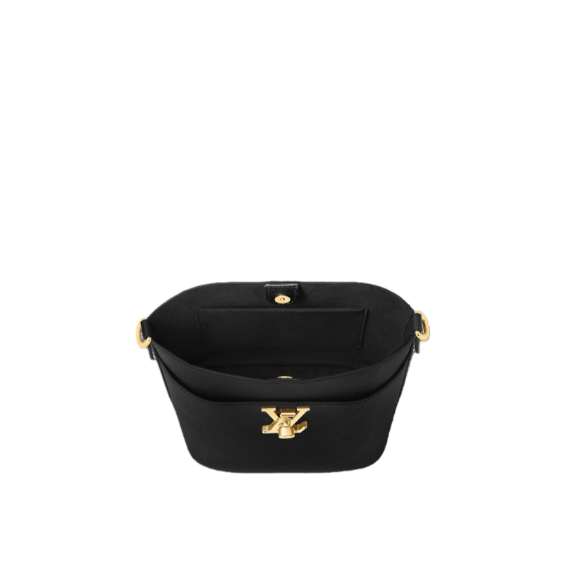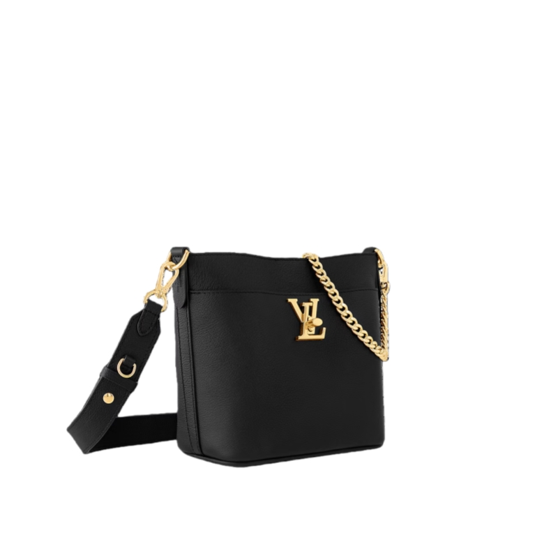 The Lock and Walk is a sleek bucket bag fashioned from grained calf leather. Lightweight and comfortable to carry, the bag combines casual ease with Parisian chic. A large front compartment secured with the LV turn lock provides convenient access to essential belongings. The detachable smart strap and golden chain handle provide for different carry styles.