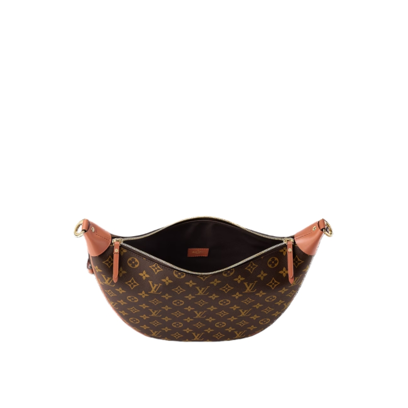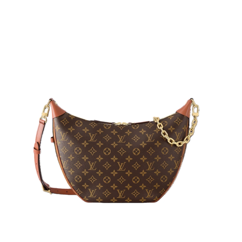 A supple and roomy bag, the Loop Hobo is made from a mix of Monogram and Monogram Reverse coated canvas. Its on-trend half-moon shape is emphasized by the leather corners. A removable chain and removable and adjustable leather strap enable multiple carrying options.