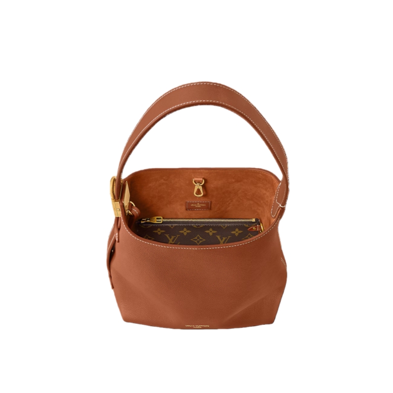 The supple Low Key Hobo PM bag is made from smooth calfskin with suede-calfskin lining. Its unique design includes a single strap that adjusts with a padlock buckle. The interior includes a removable zipped pouch in Monogram canvas to keep things organized. This bag can fit a compact wallet, large smartphone, keys, and other smaller belongings.