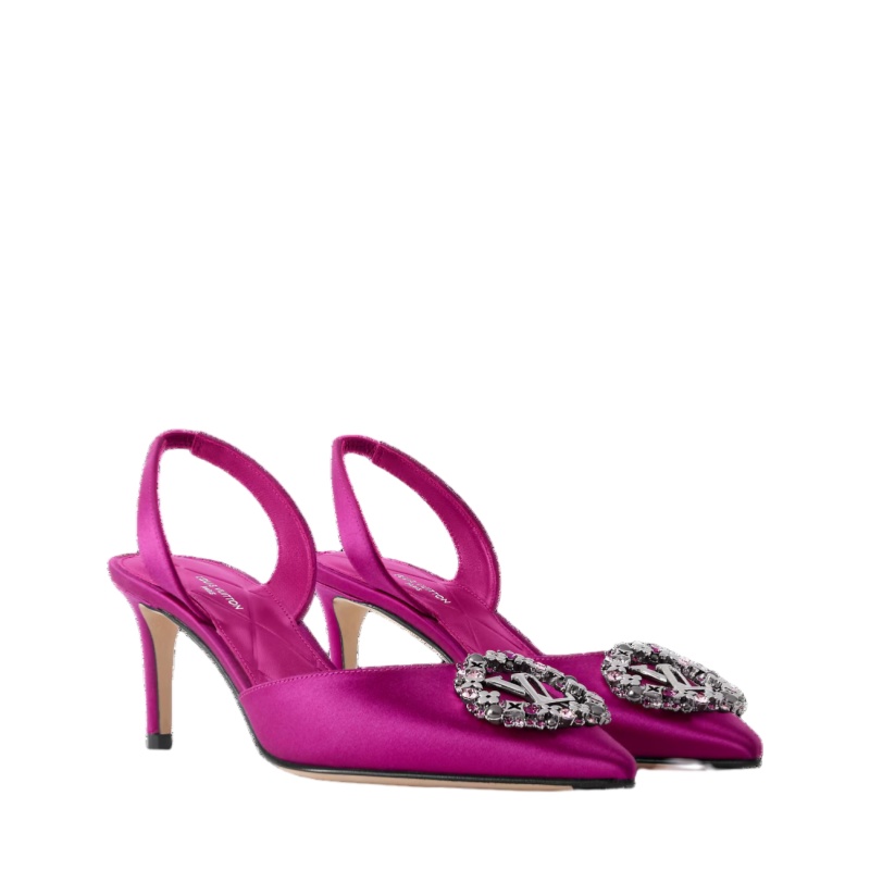 The Met slingback pump combines a satin upper with an intricate LV Initials accessory in silver-toned metal encrusted with rhinestones and flowers, a nod to the House's iconic Monogram Flowers. This sophisticated model comes on a slender, mid-height heel and features an elasticized back strap for easy fitting. It is finished with a fine leather outsole.
