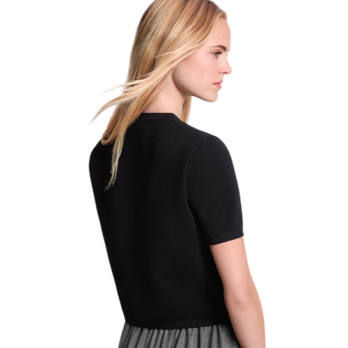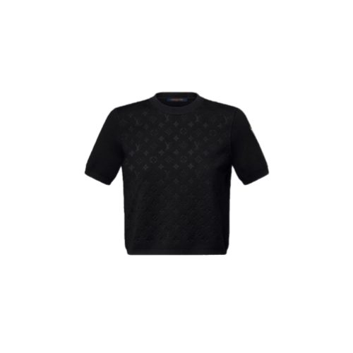 This knit top is an elevated everyday staple in a trim, straight shape spun from a soft wool blend with ribbing around the crew neckline, short sleeves and waist. The front is subtly signed with a tone-on-tone Monogram motif in relief, while a leather Louis Vuitton Paris patch adds a refined signature to the left shoulder.