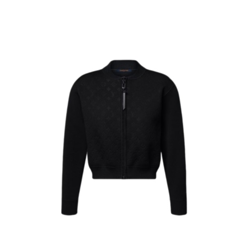 This jacket is crafted from a structured wool blend signed with a subtle tone-on-tone Monogram motif on the front for an understated signature accent, while a Louis Vuitton Paris patch adds a chic House touch to the sleeve. It has a casual, sporty feel with ribbed hems and a zipper fastening trimmed with a sleek leather pull.